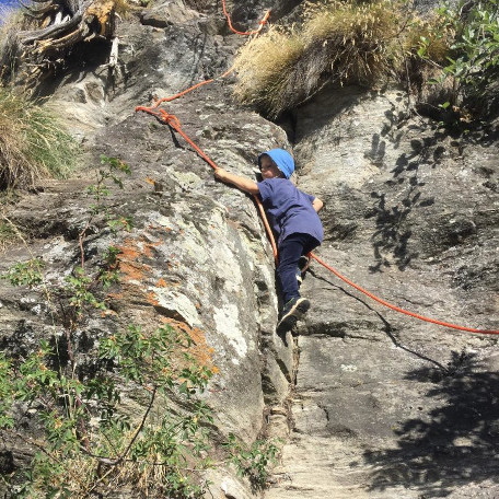 Kinder können hier unter Aufsicht von Alpinisten das Klettern am Fels erlernen.