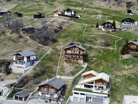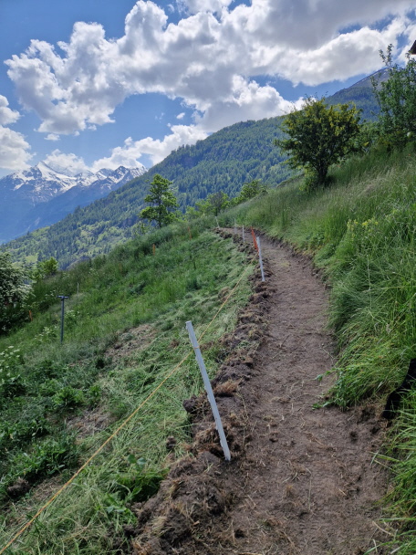 In der ersten 180° Kurve nach Furen Richtung Moosalp, geht der Trampelpfad zur Parzelle 99 ab.